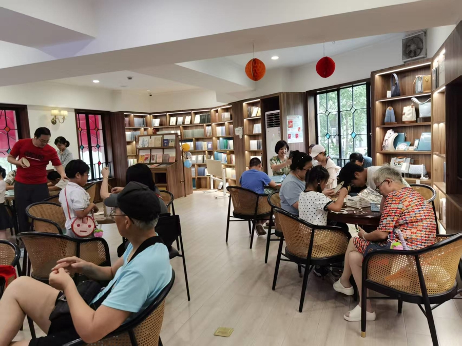 住在附近的吉米和爸爸早早来到活动现场,逐个体验项目。吉米爸爸说,这次活动内容丰富,为周边家庭提供了有趣的节日安排。其中多个活动需要父母和孩子共同完成,在轻松闲适的氛围中促进了亲子交流,成为假日期间的“高质量陪伴”。而且,1925书局地理位置优越,毗邻虹口滨江,活动结束后他们将与其他家庭成员汇合,“到北外滩逛逛吃吃,过节就要一家人在一起”。